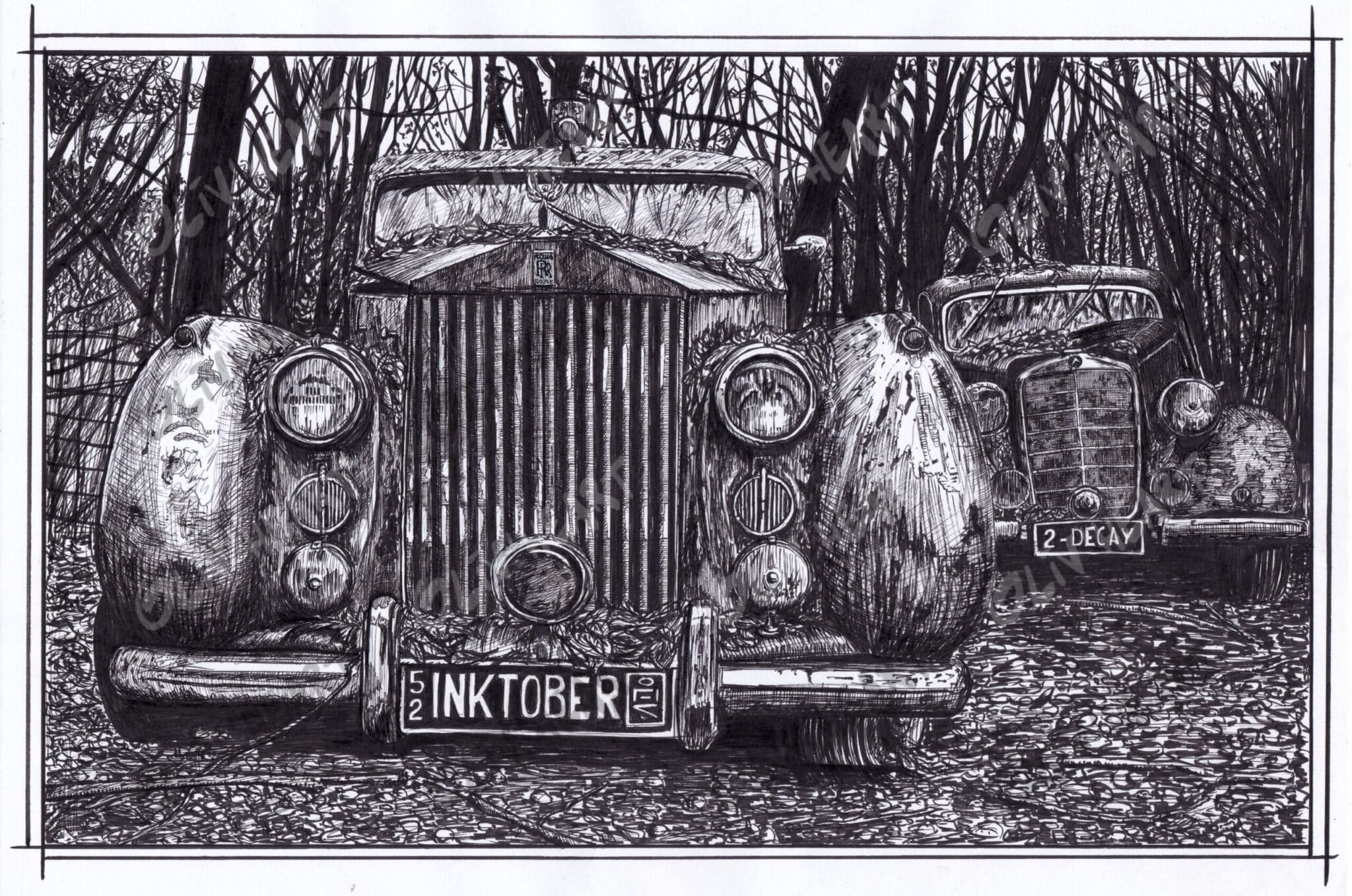 Deux vieilles Rolls toutes défraichies dans un sous bois