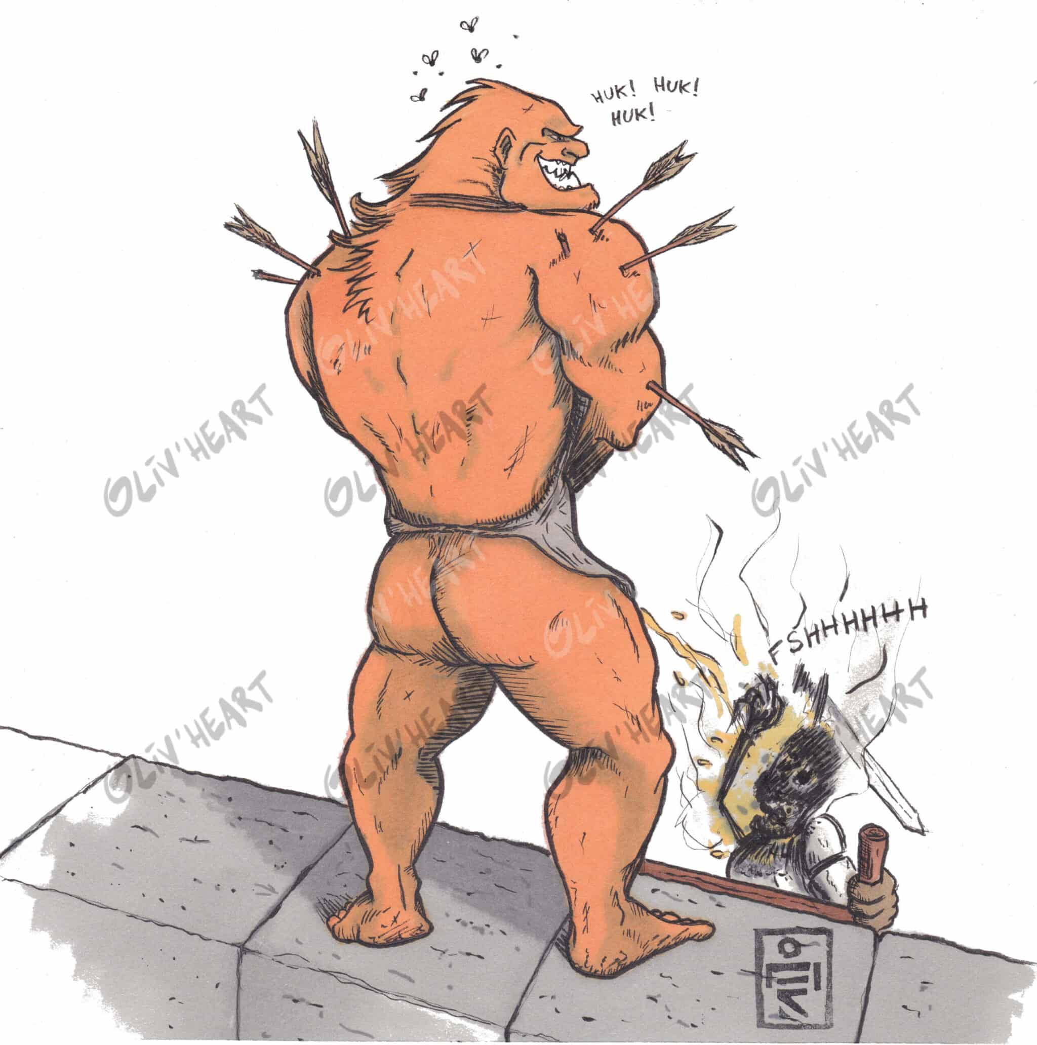Reprise de la scène épique du siège de Castel Or Azur. Quand il n’y a plus d’huile bouillante, ben… y’a toujours Hebus le Troll !