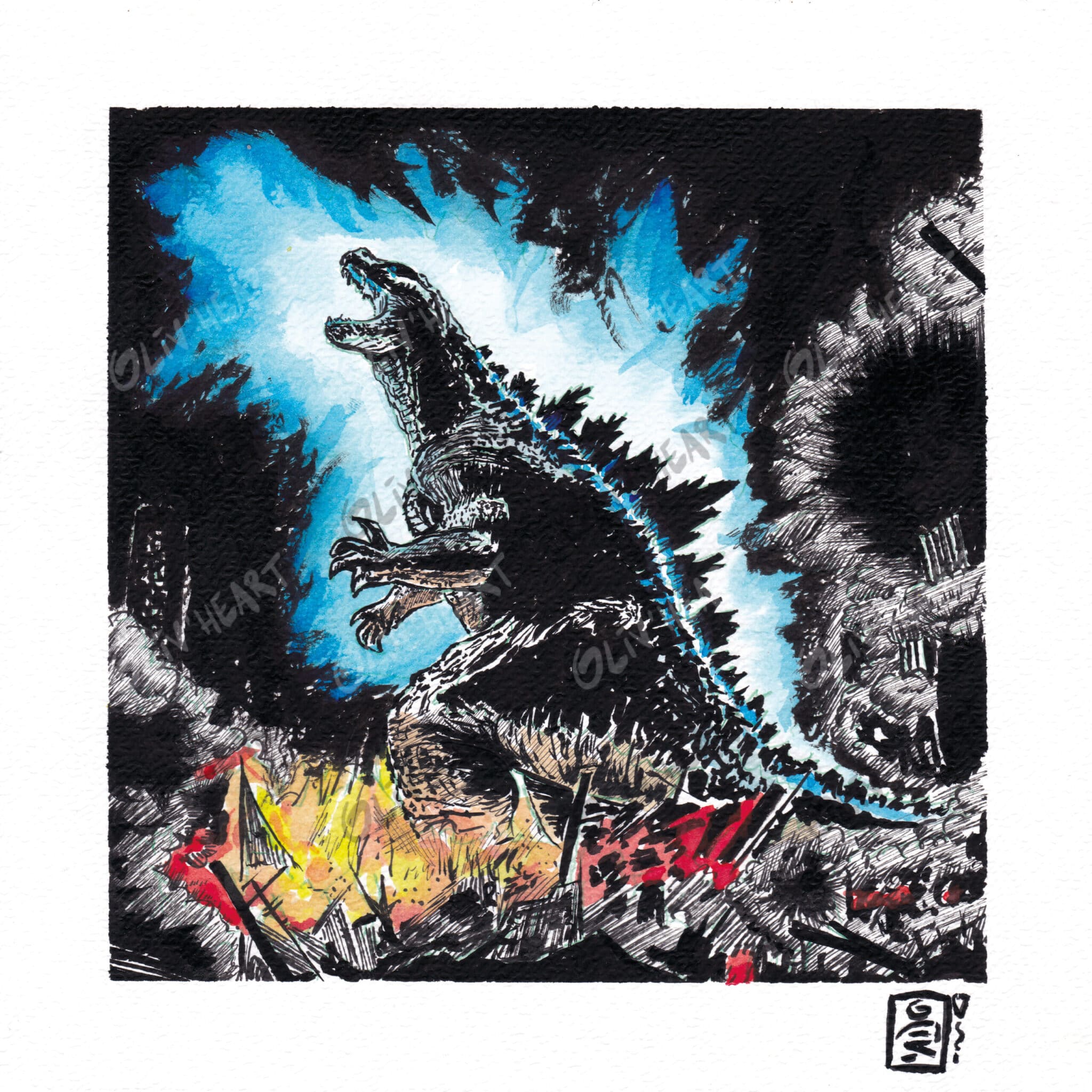 Scène de destruction nocturne par le grand Godzilla