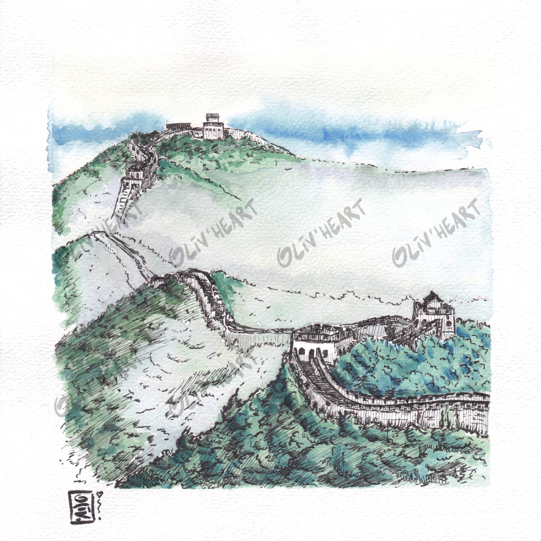 Vue brumeuse sur la Grande Muraille de Chine